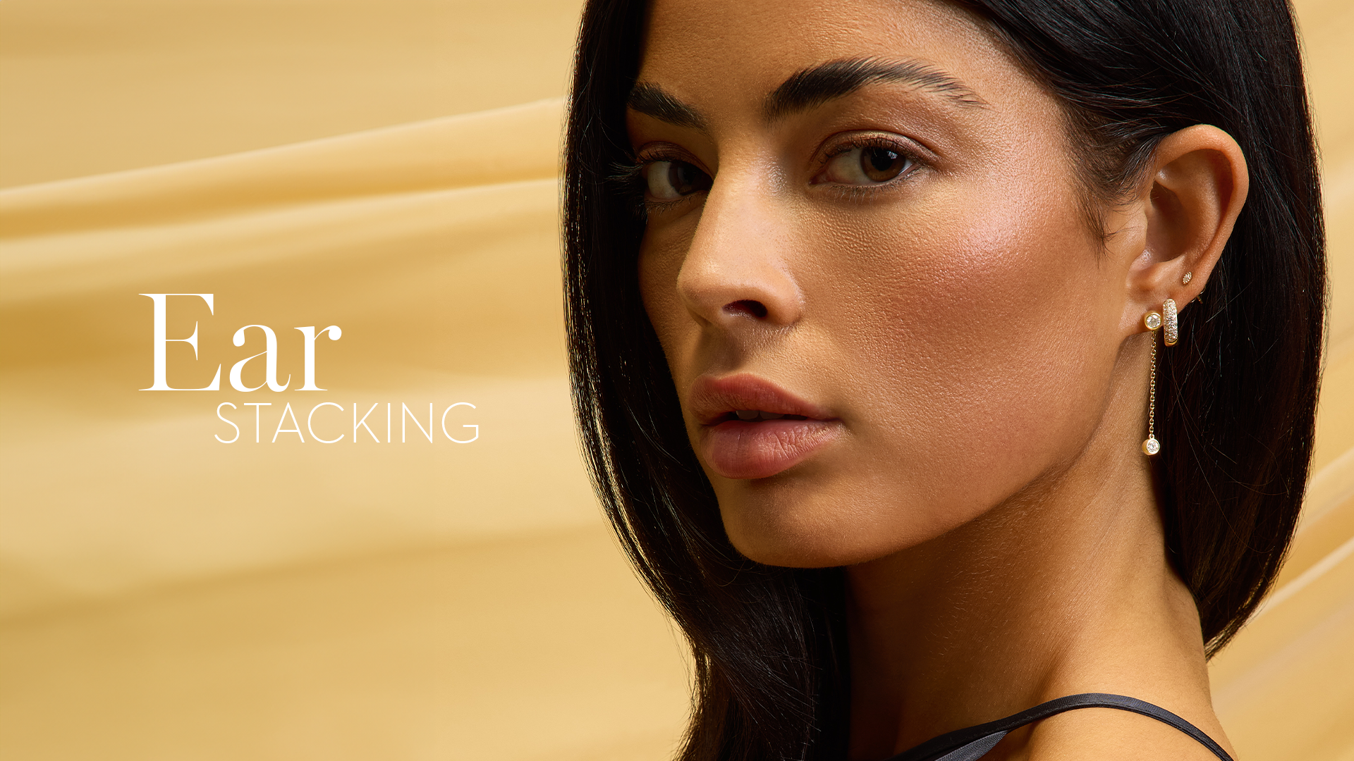 Make your ear stack playful with different layers and earring to work. Combine studs, earrings and dangling diamonds for more dimension.