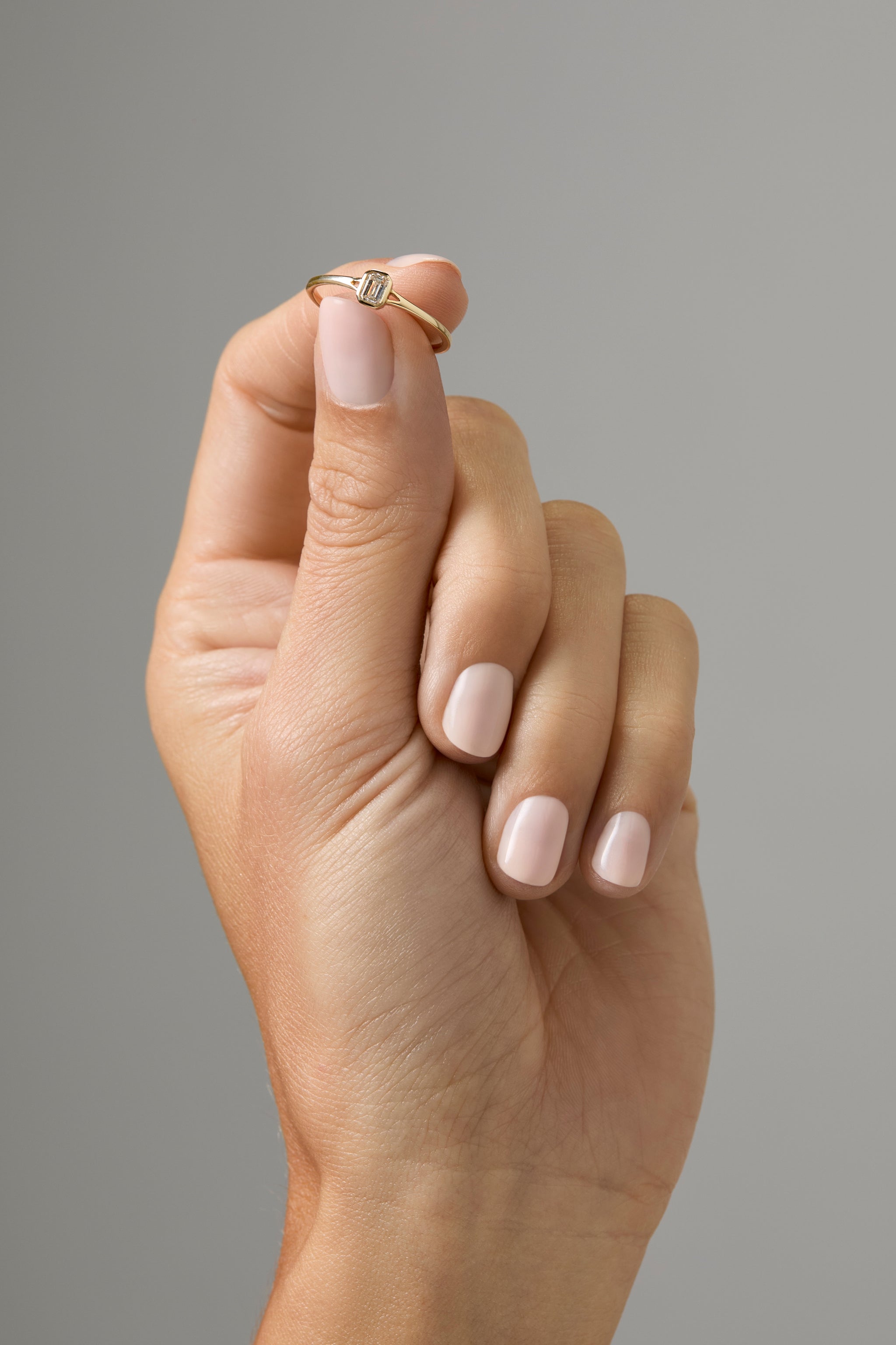 Deze ring van Diamond Point is vervaardigd uit 14 karaat geelgoud (1.15833 gr.) en is gezet met emerald geslepen diamant met een totaalgewicht van 0.22 ct.