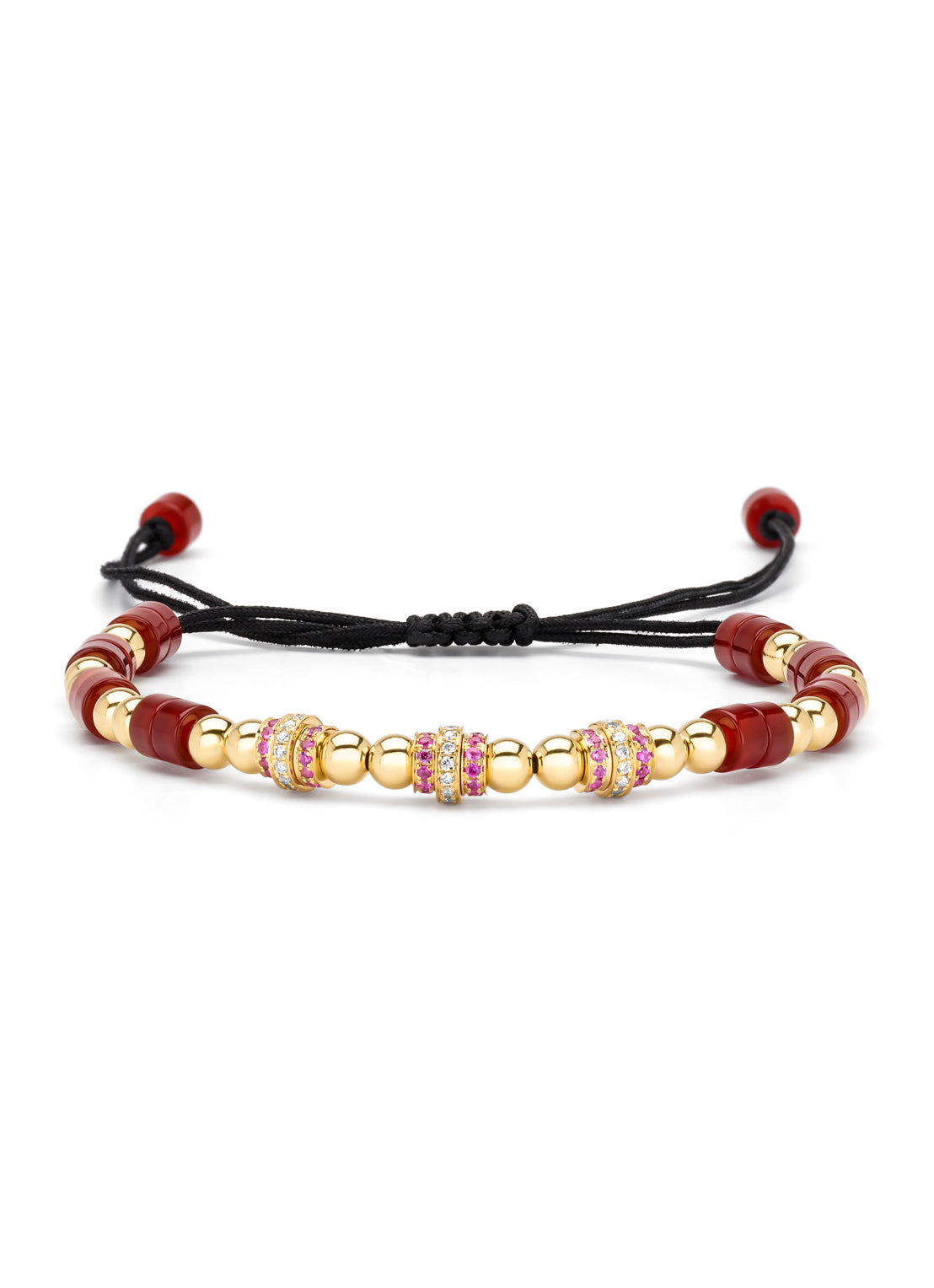 Deze armband van Diamond Point is vervaardigd uit 14 karaat geelgoud (3.8 gr.) en is gezet met onyxen en briljant geslepen diamanten met een totaalgewicht van 0.48 ct. De armband heeft een maximale breedte van 5 mm.