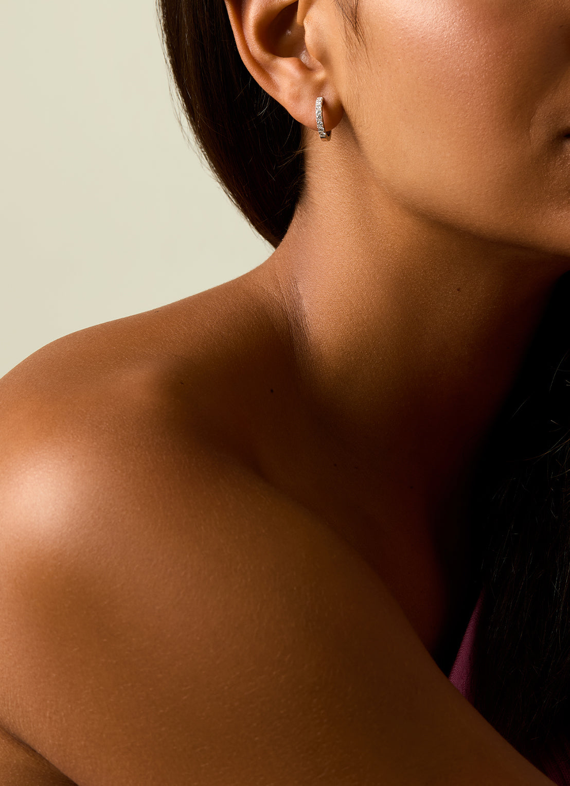 De Hearts & Arrows diamanten zijn gezet in een kastzetting, ook wel bekend als een "bezel setting." Een elegant en tijdloos ontwerp, waardoor de diamanten meer opvallen en subliemer schitteren.
