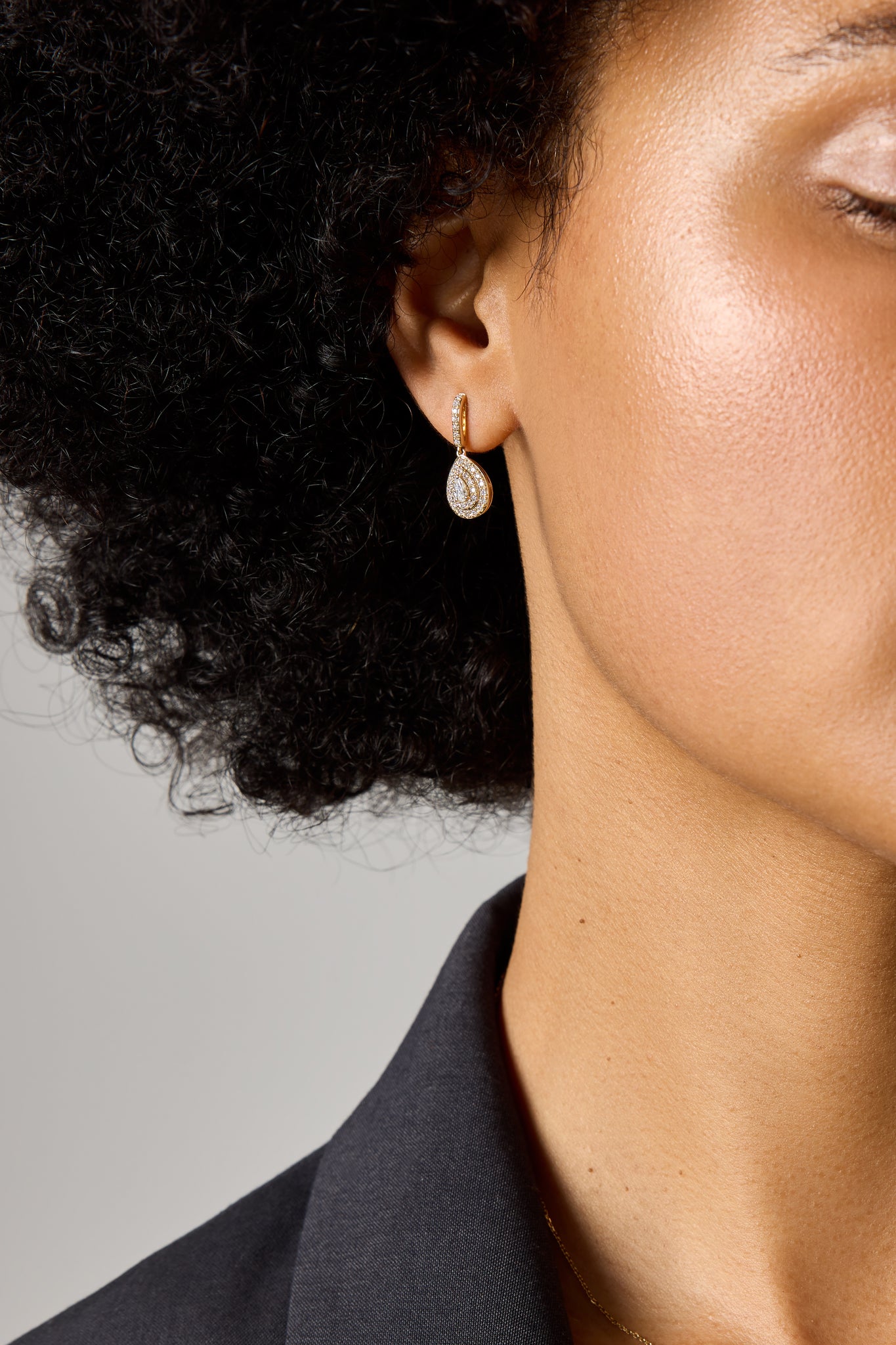 Deze oorstekers van Diamond Point zijn vervaardigd uit 14 karaat geelgoud (3.32 gr.) en zijn gezet met 2 peer en 70 briljant geslepen diamanten met een totaalgewicht van 0.58 ct. De Oorsieraden hebben een dikte van 4.5 mm., lengte van 2.1 cm. en een maximale breedte van 8 mm.